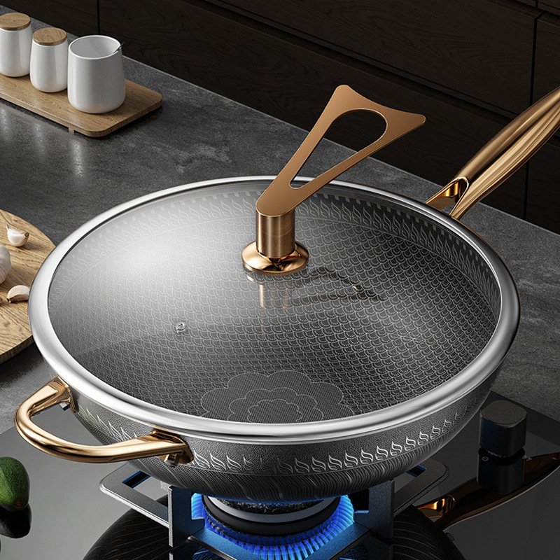Household Wok Food Grade 316 Stainless Steel Wok Gas Induction Cooker Universal Thickened Non-stick Pan Less Oil Fumes Casserole
