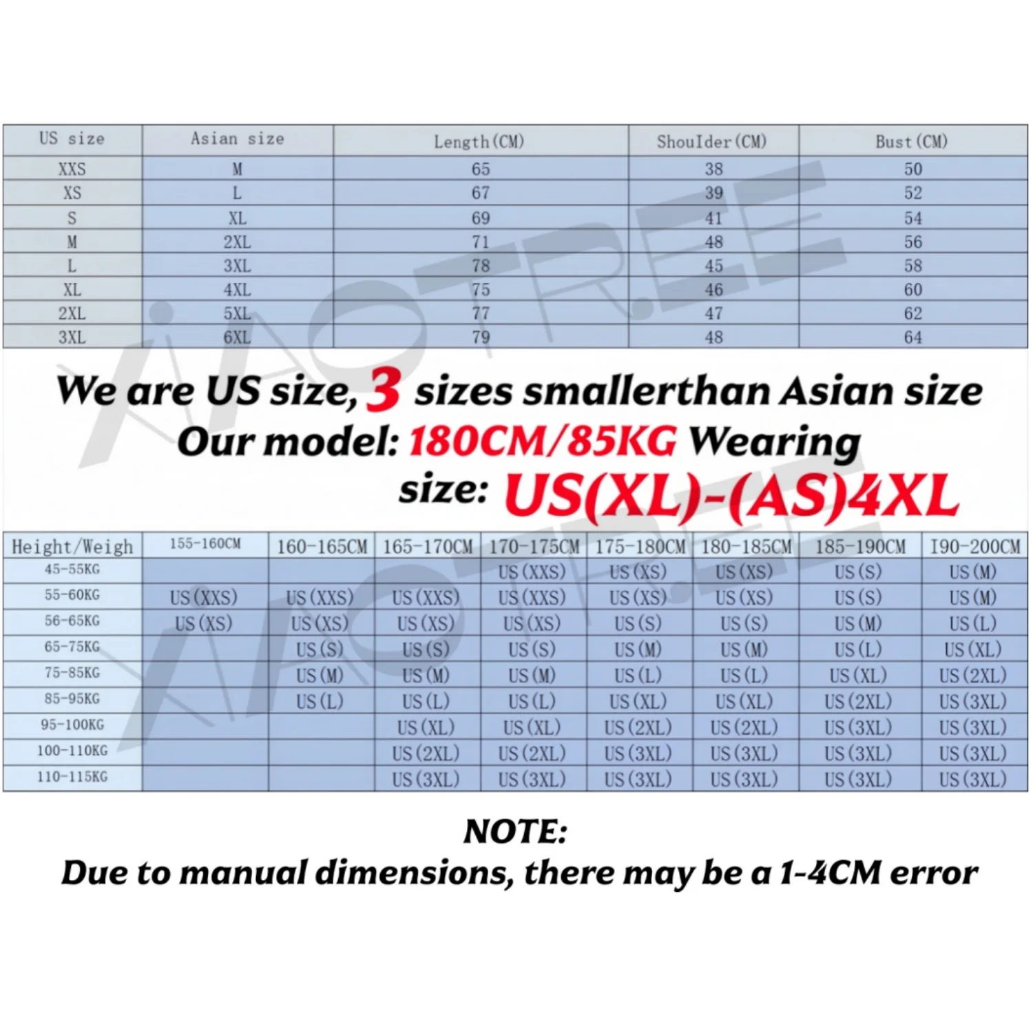 Cloth Size:We are Asian size, 3 sizes smaller than US size.Please choose the correct size according to our size chart and height/weight recommend.