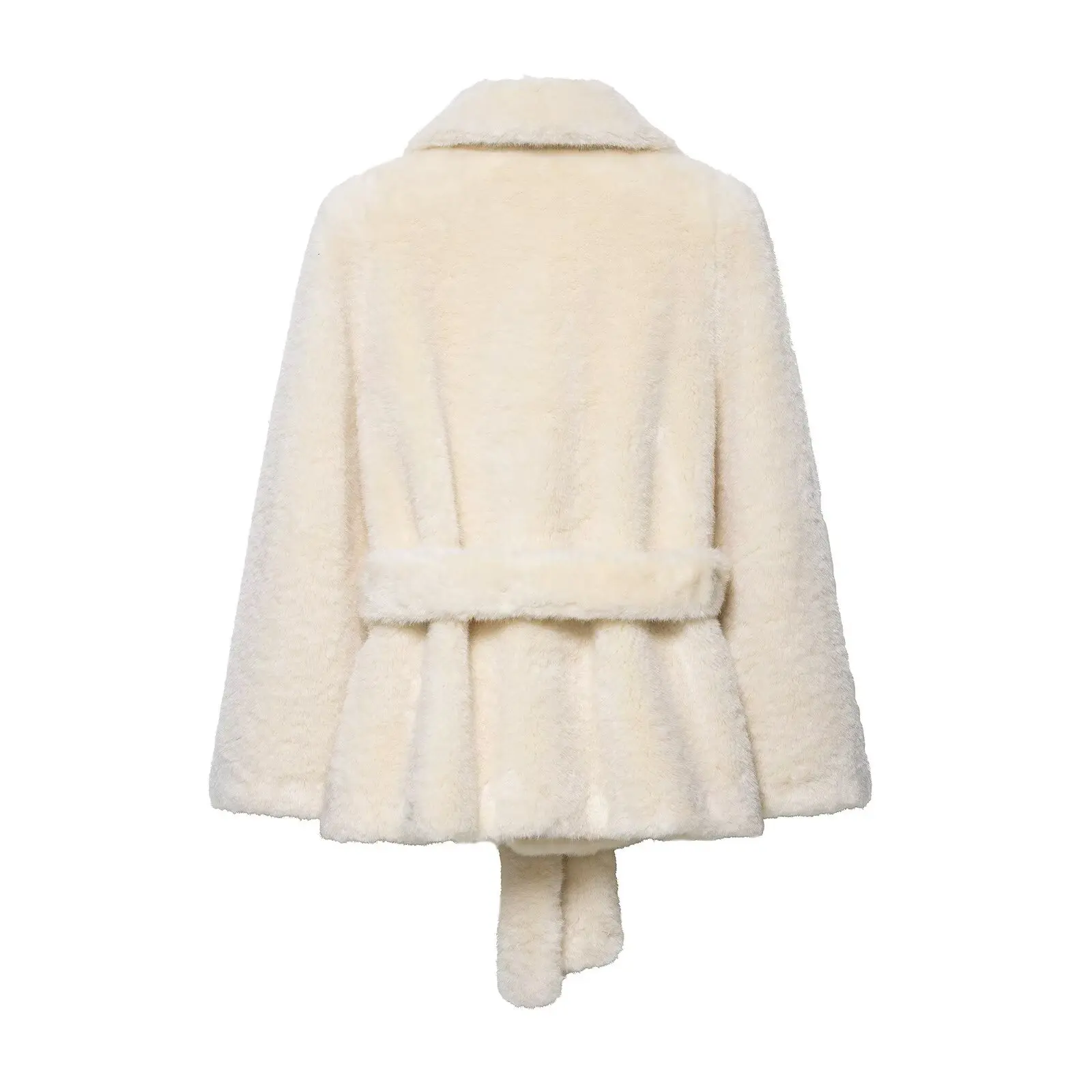 HH Women Elegant Solid Faux Fur Coats Lapel Long Sleeve Belt Jackets 2025 Autumn Winter Casual Loose Warm Lady Street Outwears